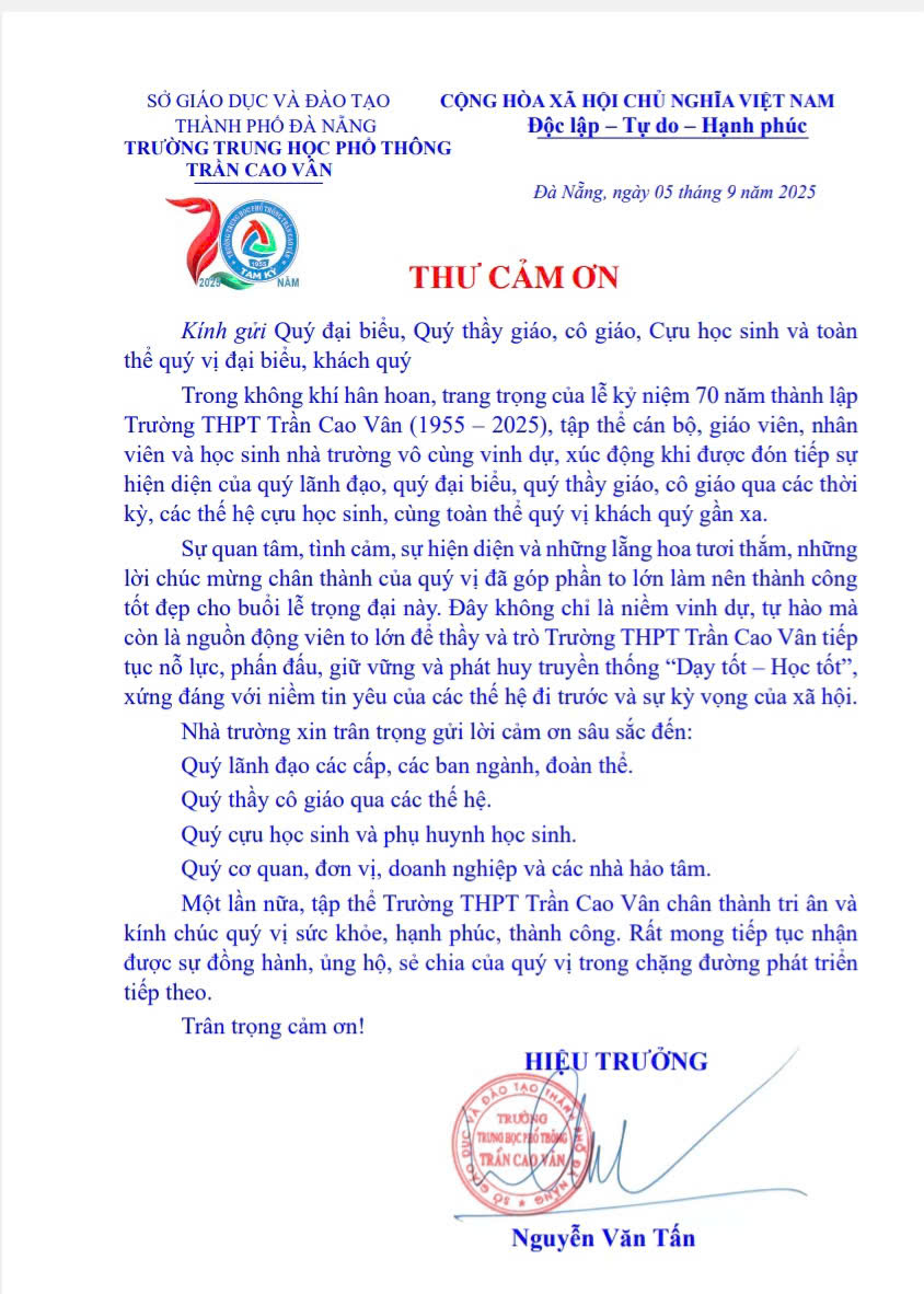 Giấy mới kỷ niệm 70 năm thành lập trường